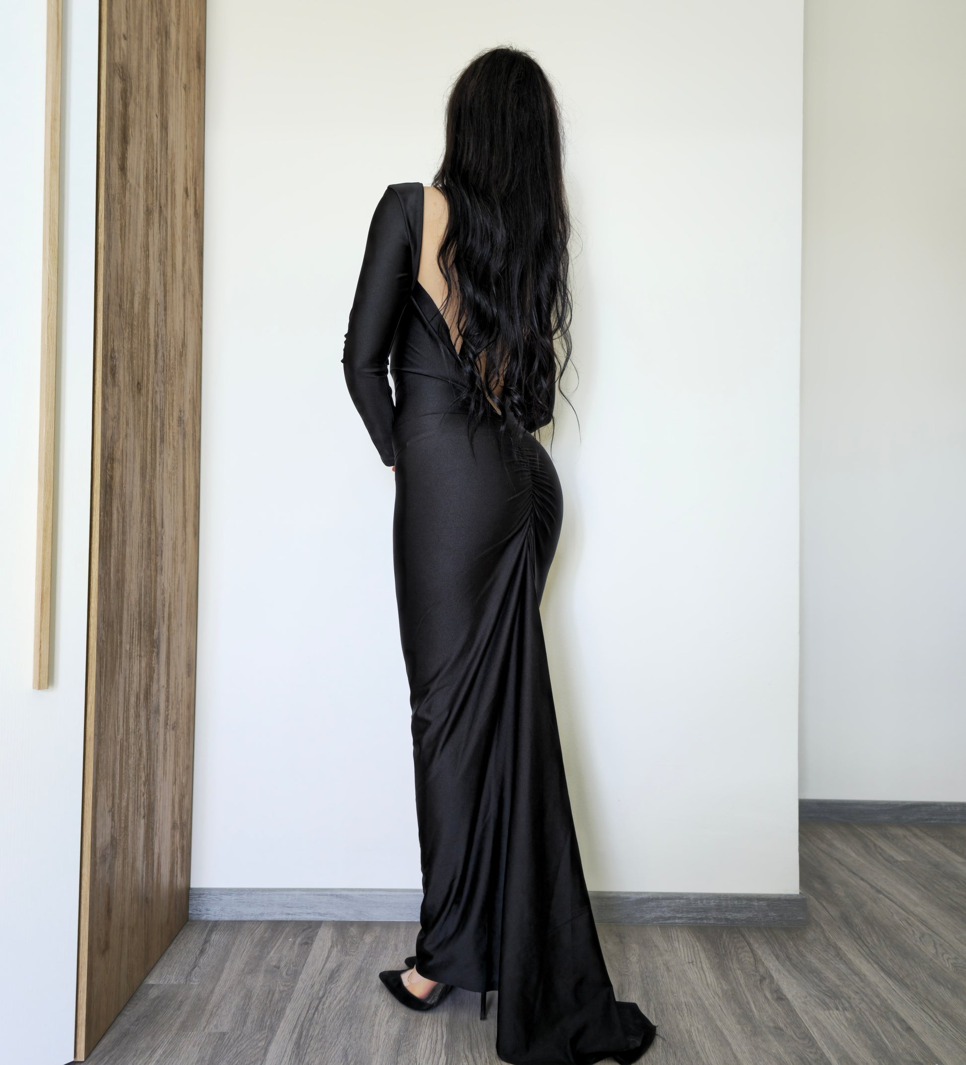 Realizzato con cura e attenzione ai dettagli, questo abito è progettato per farvi sentire sicure e bellissime in ogni occasione. Le spalline imbottite aggiungono un tocco di struttura e sostegno, mentre la schiena aperta lascia intravedere una dose perfetta di pelle, aggiungendo un elemento di seduzione senza tempo.