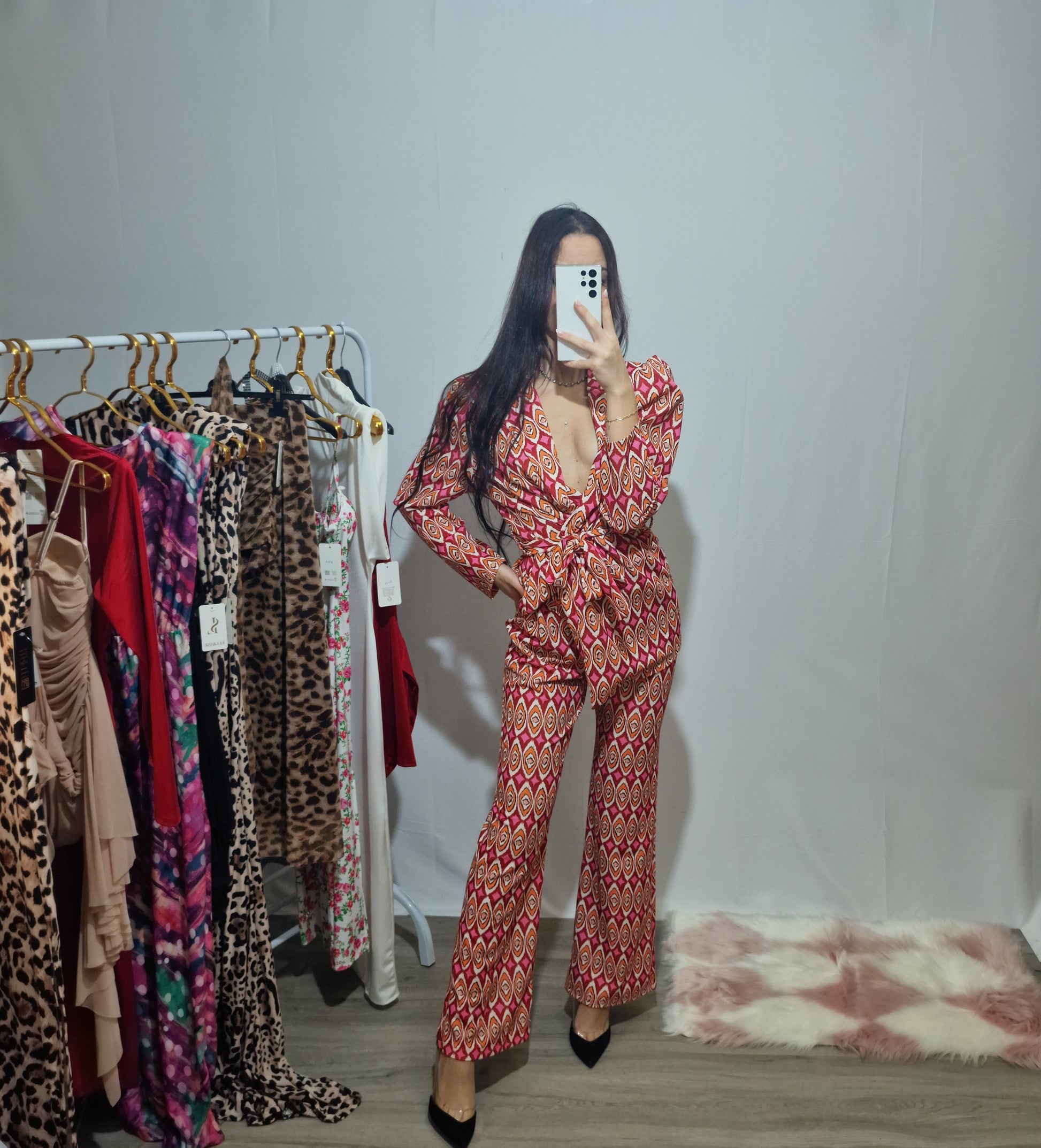 Questo coordinato è perfetto per chi cerca di distinguersi dalla folla con un look che trasuda fiducia e creatività. Indossalo per un'occasione speciale o per dare una scossa di energia al tuo guardaroba quotidiano. Combinalo con accessori semplici per lasciare che il coordinato sia il protagonista assoluto del tuo outfit, o osa abbinarlo con pezzi audaci per un mix di stili indimenticabile.
