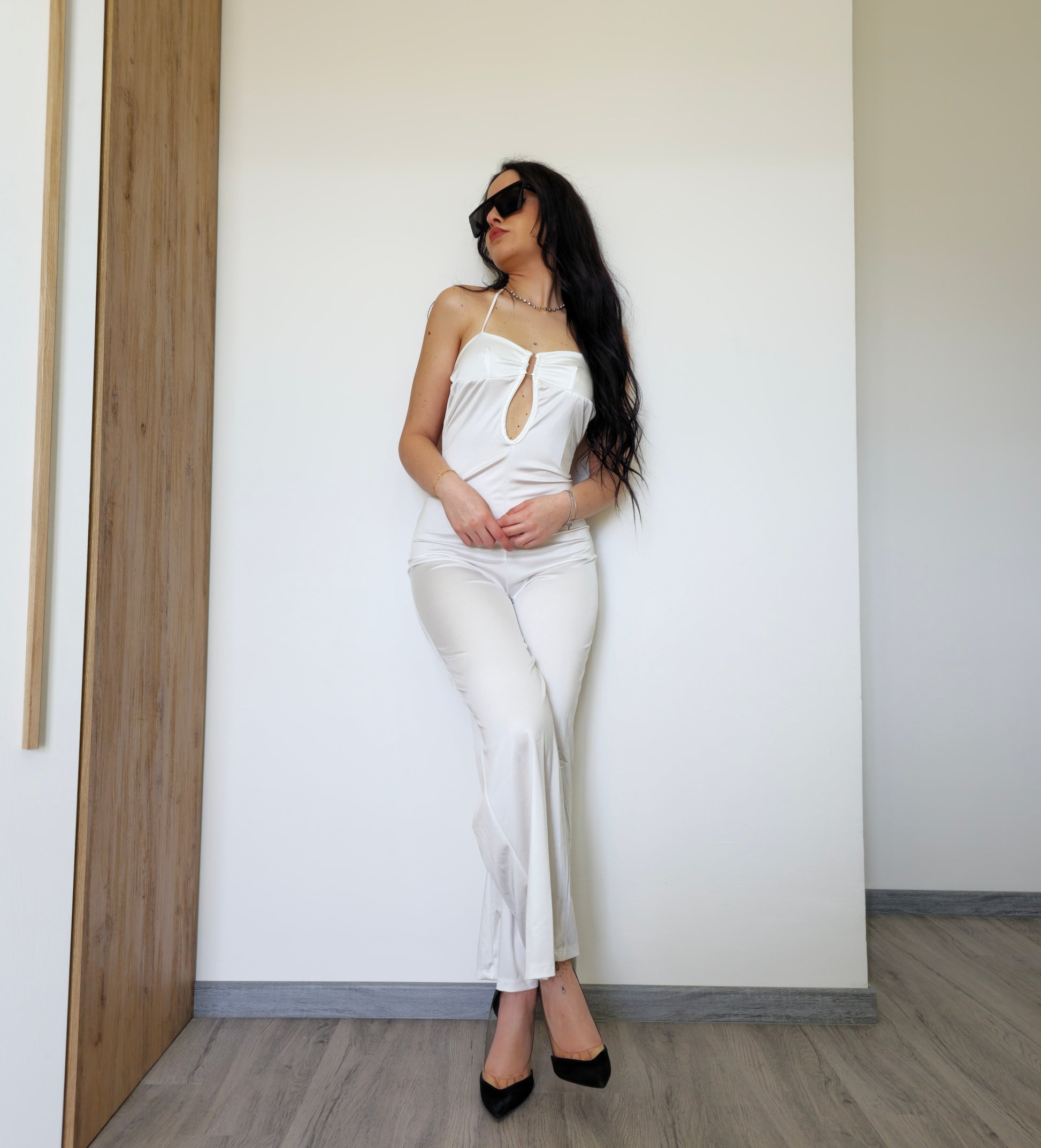 Questa tuta estiva è l'incarnazione dell'eleganza senza sforzo e della sensualità discreta. Con uno stile senza tempo e un design sofisticato, è perfetta per chi cerca un look fresco e audace per le giornate estive.